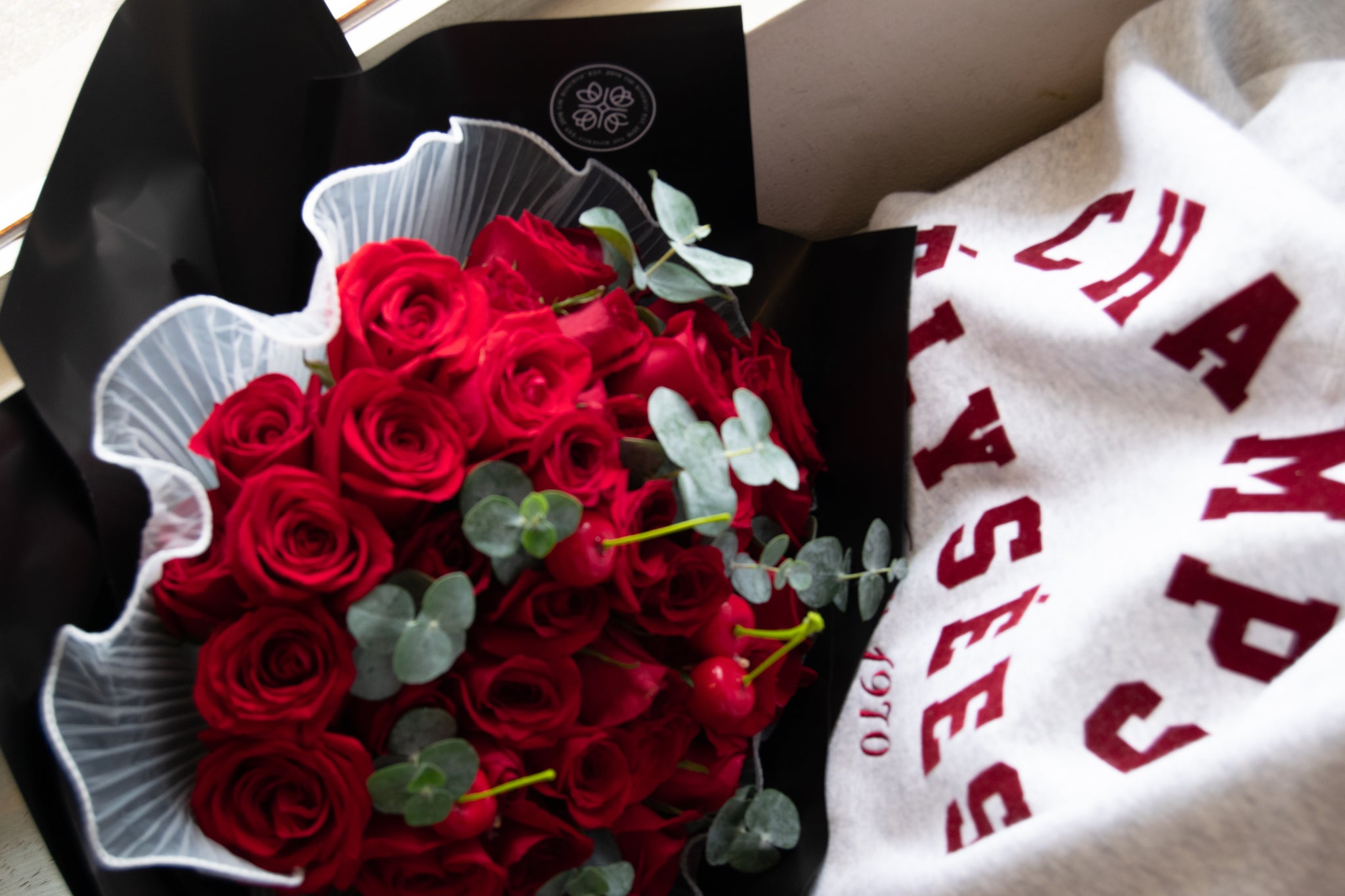 La estrella de los ramos - CHERRY. Celebra el amor con nuestro ramo de rosas rojas y hermosas cerezas, una combinación única y lujosa para expresar tus sentimientos más profundos. Haz de este día el más especial con CHERRY.