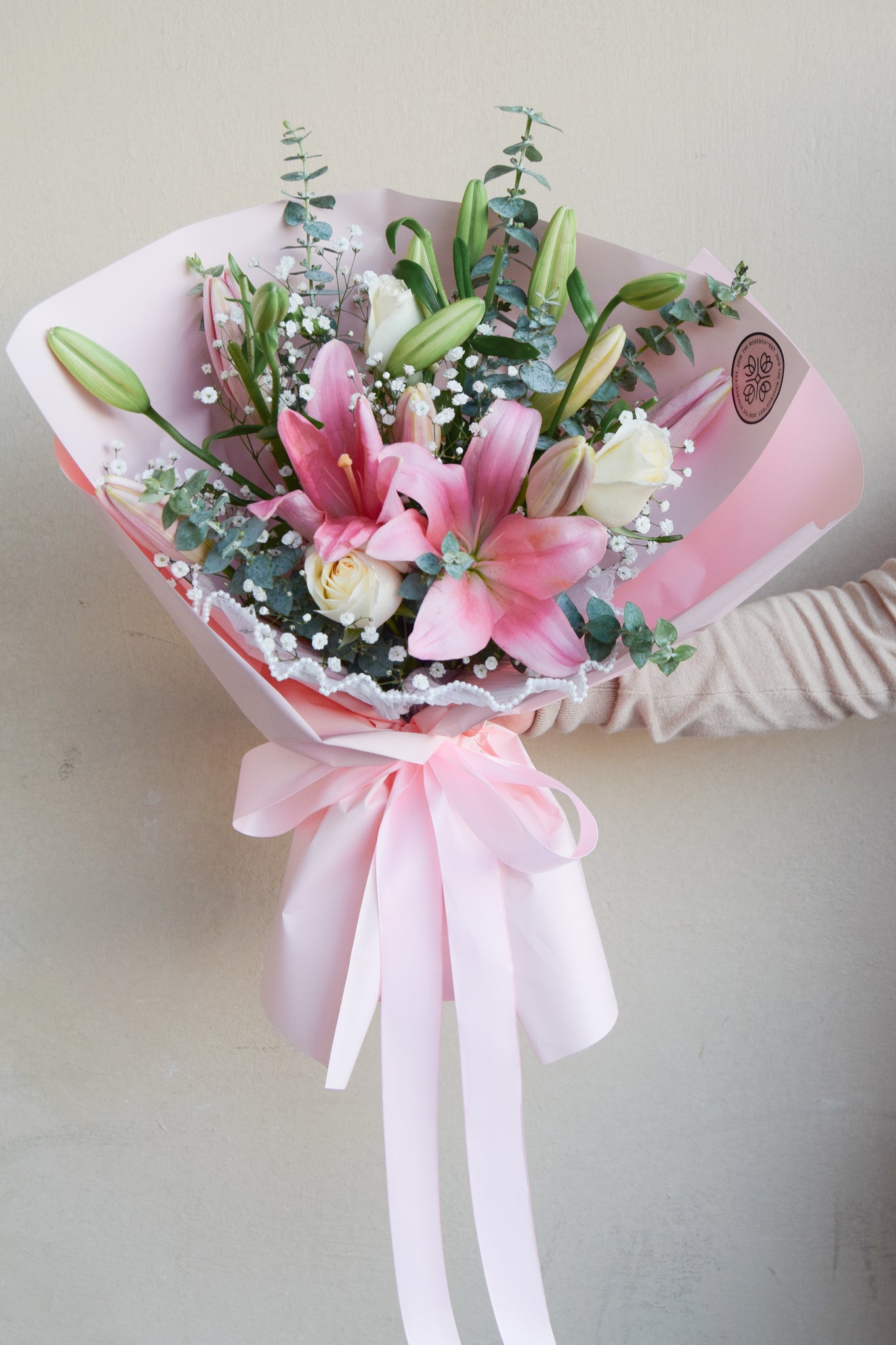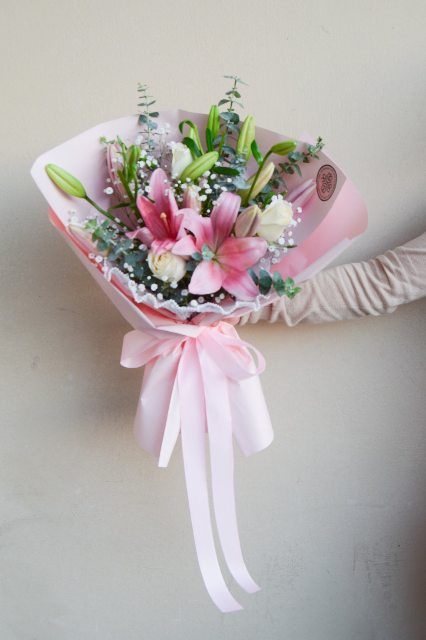 Conquista el corazón de esa persona especial con este cautivador ramo de lilys acompañado de flores delicadas seleccionadas con cuidado.